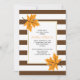 Duas folhas de maple laranja e um padrão listrado com listras castanhas e brancas junto com um quadro branco com contorno dourado com o seu texto adornam este chá de panela de outono. As listras castanhas e brancas cobrir as costas.