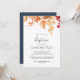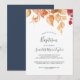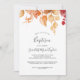 Este outono deixa branco e o convite de batismo arrojado é perfeito para uma dedicação infantil em outubro. O design rústico apresenta folhas de outono de cor d'água pintadas à mão em tons de sol de amarelo, laranja queimado e vermelho queimado.