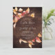 Este outono deixa casais de madeira marrom rústica o convite para chá é perfeito para um chá de casamento de outubro. A design russa apresenta uma impressionante mão pintada a aquarela folhas de outono em tons de sol de amarelo, laranja queimado e vermelho queimado que pop sobre um fundo de madeira falsa.