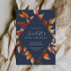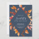 Este outono deixa marinho azul e o convite à aniversário de 40 anos burgundy é perfeito para uma festa de aniversário de outubro. A design rusticidade moderna apresenta uma mão espantosa pintada de folhas de outono de aquarela em tons coloridos de amarelo, laranja queimado e vermelho queimado que pop sobre um fundo azul marinho.