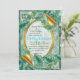 Folhas de plantas verdes tropicais e folhagem entrelaçada com fundo azul personaliza cartão de anúncio