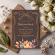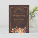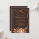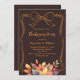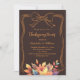 Um fundo castanho escuro e escuro. Decorados com folhas coloridas encharcadas e um arco desenhado à mão. Personalize e adicione os detalhes da festa.