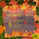 Convide seus amigos e família para um janto caloroso e confortável de Ação de Graças com este belo convite. Colocado contra um fundo de madeira rústico com folhas de outono espalhadas pelas bordas, o convite apresenta fontes elegantes cursivas e impressão em cor laranja e amarela. O texto é totalmente personalizável.