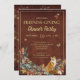 Folhas, folhagem e bolotas de cor de água rusticada, arranjadas de forma artística em uma área de repouso confortável para uma bela raposa parar e aproveitar o tempo de queda. As cores são moles, muda, cor da floresta contra um fundo marrom esmaecido com uma faixa fina de sotaque amarela. Preencha suas informações usando o modelo fácil de usar fornecido. O lado inverso do convite é um padrão de folhas de outono. Se precisar de assistência com personalização, por favor sinta-se à vontade para me enviar uma mensagem aqui no Zazzle. Não se esqueça de navegar em volta do nosso compro, já que existem outros itens de coordenação também.