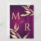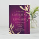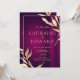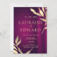 Esta design mostra uma mistura vermelha de vinho de fundo burgundy com um ouro de folhas de design botânico feita em efeito de aquarela. Uma folha verde com efeito folha ouro adiciona mais detalhes à peça. A intrincada design vai bem com um casamento de outono, verão e primavera. Disponível como uma grande combinação com papel de carta de casamento. Fontes modernas de caligrafia são usadas em letras ouros e brancas.