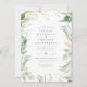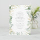 Este convite fotográfico é a escolha perfeita para qualquer casal procurando por algo delicado e refinado para o seu casamento! Esta design apresenta um fundo branco de marfim com um arranjo lindo de folhas verdes delicadas com galhos dourados para adicionar aquele toque de glamour ao seu convite. No centro da design está o convite para a tipografia em uma mistura de fontes elegantes. Este convite reverte para uma imagem sangrada de cheio de sua escolha, simplesmente carregue seu próprio e veja seu convite ganhar vida!