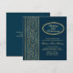 Convite de aniversário de casamento de 50 anos com folhas douradas em fundo azul escuro. Fácil de personalizar - altere a fonte, cor, tamanho e coloque o ano da celebração.