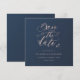 Convites Folhas em rosa e azul marinho quadrado Save the Da