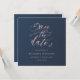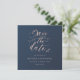 Projetado para combinar com a nossa colecção Folhas Rosa e Azul Marinho, este convite personalizável de save the date quadrado apresenta save the date em rosa bege num tipo de letra script com folhas num fundo azul marinho. Para personalização mais avançada deste design, por exemplo, alterar o layout, tipo de letra ou tamanho do texto, clique no botão "Personalizar" acima.