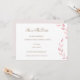 Um doce design botânico com folhagem rosa claro e escrita elegante em dourado sobre um fundo branco puro na frente e fundo rosa claro no verso.