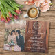 Um Chá de panela botânico de cor d'água monograma elegante com sua própria foto. Para primavera, verão, outono ou casamento no inverno. Design de aquarela verde do ramo de oliveira sobre fundo de celeiro escuro. Você pode facilmente adicionar sua própria foto para torná-la muito pessoal e exclusiva e adicionar seu próprio texto.