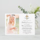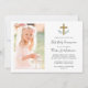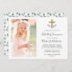 Impressão de folha de eucalipto, simples e moderno, com uma cruz de cor dourada e uma tipografia moderna com a cor dourada, em primeiro lugar, a Santa design de Comunhão. Este convite apresenta a foto do seu filho na frente do cartão. Esta design verde e branca rústica é perfeita para esta ocasião religiosa cristã especial.