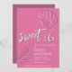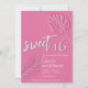 Mínimo de palma em relevo tropical, escrito rosa doce 16 design de Convite.