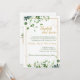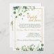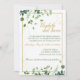 Linda borda de ouro com convite de casamento verde de folhas florais