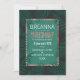 Elegante, chique e moderno desenho impresso em falso dourado-rosa com bordas e folhas de palmeira de praia tropical em esmeralda-jade verde sobre fundo preto e tipografia dourado-rosa, Você será minha Dama de Honra, convites para Damas de Honra. Este design clássico e sofisticado é perfeito para a noiva moderna e elegante que deseja fazer com que suas damas de honra se sintam especiais e amadas. Personalize com sua própria mensagem na frente e um monograma inicial personalizado no verso. Todos os desenhos são impressos em foto.
