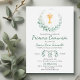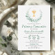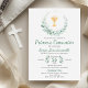 Celebra un hito sagrado con nuestra Encantadora Invitación de Primera Comunión. Decorada con hermosas hojas verdes y un encantador cáliz, esta invitación extiende una cál ida bienvenida a niños o niñas, inventa uma série queridos a unirse en este momento especial de la primera comunión. Celebrar um marco sagrado com o nosso Convite à Primeira Comunhão Verde. Adorado com bonito folhas verdes e um charmoso cálice, este convite estende calorosas boas-vindas a meninos ou meninas, convidando os entes queridos a se juntarem a este momento especial da comunhão sagrada.