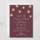 Convites Folhas Vermelhas e Douradas do Burgundy de Ação de