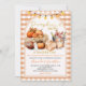 EDITABLE Pumpkins Brechas e Fraldas Queda Partido Gênero Revise Convite Laranja Legante Gingham Autumn Pumpkin Convite de festas