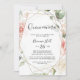 Este convite floral de folhagem verde de ouro geométrico Quinceañera é perfeito para uma festa de aniversário 15 moderna. O design apresenta uma folhagem botânica, pintada à mão, verde e dourada, com flores cor-de-rosa, pinceladas, brancas, enfeitando uma elegante estrutura geométrica.