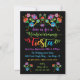 Colorida e bonito Arte Folclórica Bordados Mexicanos Fiesta, convites de festas de Aquecimento Doméstico. Recursos desenhados à mão em flores bordadas e maracas em um antigo fundo de quadro negro. Ilustração desenhada à mão por McBooboos. Muitos itens correspondentes a este design! Bordado Faux, este é um desenho