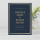 Uma máquina de escrever sobre temas azuis e dourados, marinho vintage, com convites de casamento de estilo rústico para tipografia de fontes douradas.É perfeita para qualquer garota refinada e sofisticada ou qualquer pessoa. Este design é ideal para um evento de festa elegante e de tendências. Personalize este design com sua própria mensagem e informações personalizadas. Todas as designs são impressas.