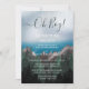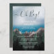 A floresta cobriu montanhas, olhando para o convite do chá de fraldas do oceano azul profundo. Linda pintura russa usando verde, azul e marrom. Pode ser usado para um garoto ou trocado para dizer Oh Baby para um chá neutro.