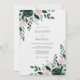 Delicate watercolor blooms in deep forest green and soft blush pink create an ethereal atmosphere. Lush greenery intertwines with hints of delicate petals, evoking a romantic and natural feel. This design is perfect for a sophisticated, nature-inspired union.
