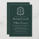 Convites Forest Green Monogram Crest QR Code Wedding