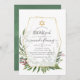 O convite do Woodland Greenery bat mitzvah com ervas selvagens, samambaias, folhas e eucalipto com estrutura geométrica dourada personalizável para suas especificidades de evento.