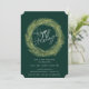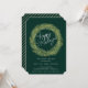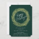 Coroa russa de pinheiros florestais, Convite do Feriado. A placa tem uma simples pinheira com a letra "Feliz feriado". As cores de fundo mostradas em verde esmeralda podem ser personalizadas. Traseira dos recursos da placa, padrão de faixa diagonal de ouro fofo.
