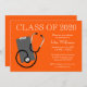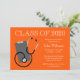 Convites De Anúncio De Graduação Da Escola De Medicina Laranja. Um estetoscópio e uma ilustração da área de transferência num fundo laranja. Perfeito para um formandos, para a graduação na escola de enfermagem ou para a graduação na faculdade de medicina!