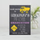 Convite para a Celebração de Pós-Graduação na Pré-escola! Prepare-se para acelerar o entusiasmo com este legal convite para a graduação na pré-escola de construção de caminhões amarelo para a sua pequena cara! Com um belo caminhão de lixo amarelo e um belo sinal de travessia de caminhão colocado contra um pano de fundo, este convite garante uma explosão para todos. Adicione seus detalhes de evento sem esforço para um toque personalizado que tornará sua celebração especial!