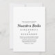 Este convite formal de casamento espanhol para a nuestra branca negra é perfeito para um casamento clássico espanhol. O design apresenta uma fonte elegante para embelezar seu evento.