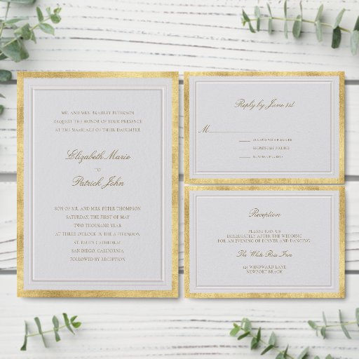 Convites Formal Modern Classic Elevated Gold Ivory Wedding