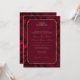 Convites de casamento elegantes em um estilo mais formal com um layout clássico de quadros dourados e texto com uma borda ornamentado paisley. Este exemplo adiciona um toque moderno com seu fundo em Trendy Burgundy. Adicione os detalhes do evento em uma fonte de serifa para seu recurso tradicional. Procure ID767 para ver outras opções de cores para este design.