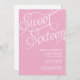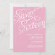 Este doce 16 convite cor-de-rosa é embelezado com uma carta formal branca.