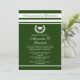 Floresta Verde e Branco... Listras normais na sua escolha de cores escolares. Rua Laurel com o ícone do logotipo do boné de formatura mortarboard. Anúncio personalizado simples e clássico, simples e personalizado, com fundo de cor sólida e faixas horizontais. O boné do Formando e o padrão da crista são repetidos na parte traseira da placa. Um estilo clássico e eterno, personalizável para se adequar ao dia especial do seu filho ou formando. Adicione informações sobre a cerimônia inicial, festa em casa aberta, recepção ou quaisquer detalhes que desejar.