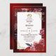 The design features a rich, dense border of roses in shades of deep red (burgundy) and dark pink, creating a regal and captivating look. Delicate gold accents (such as wedding rings and angular motifs) add a touch of shimmering sophistication.