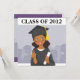 Linda mulher africana, americana, celebrando o dia da graduação, com diploma na mão e fazer na placa. Celebre o seu Dia de Licenciação com este adorável design do Kakigori Studio.