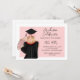 Convite para ilustração de formando de moda de cabelos loiros. A ilustração apresenta um formando feminino vestindo um arco cor-de-rosa no boné preto do formando. Ela também é rosas cor-de-rosa carregando. Bela arte de graduação para estudantes do segundo grau ou da faculdade. O convite para formando será perfeito para irmãs, amigos, mães, primos e toda a família. Você pode personalizá-lo adicionando os detalhes da sua festa.