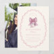 Convite para graduação de Arco rosa Coquette Comemora sua graduação com estilo e elegância usando o Convite para Graduação de Arco Rosa Coquette. Apresentando uma delicada ilustração cor-de-rosa, tons pastéis macios e tipografia refinada, esse convite combina sofisticação com um toque feminino. Uma foto personalizada adiciona um elemento único e pessoal, fazer esta é a maneira perfeita de anunciar seu dia especial. Recursos: Estética Chic Coquette - Projetada com um arco cor-de-rosa fino e detalhes românticos e suaves para uma aparência eterno. Foto personalizada - Mostre seu retrato de graduação favorito para um toque verdadeiramente personalizado. Tipografia Elegante - Um layout de fonte sofisticado que melhora o estilo refinado do convite. Qualidade Premium - Impresso em estoque de cartão de alta qualidade para um acabamento luxuoso e profissional. Detalhes personalizáveis - Personalize com seu nome, data de conclusão, escola e informações sobre eventos. Opções digitais e de Impressão - Escolha uma versão imprimível ou mande-a imprimir e entregar profissionalmente. Perfeito para uma sofisticada, mas brincalhona celebração da graduação, este convite dá o tom para um evento memorável e na moda. Peça agora para adicionar um toque de charme de coquete ao seu anúncio de graduação.