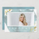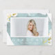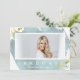 Este convite de festa de formatura moderno e elegante mostra a foto do formando sobre um salto de aparência de cor d'água turquesa macia, com sotaques dourados falsos.