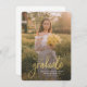 Adicione a sua foto favorita, o anúncio de graduação e o convite de festas no verso clicando no botão "Personalizar". Apresentando uma foto vertical do quadro de cheio com a palavra "formando" em script em negrito.