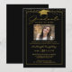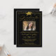 Convite para festa de formatura elegante preto e dourado com sua fotografia, moderna, moderna tipografia de script manuscrito, boné de formatura ou cartão-relva dourado e minúsculo confete de estrela-dourada. ASSISTÊNCIA: para obter ajuda com a modificação ou personalização do design, a alteração de cor ou a transferência do design para outro produto, entre em contato com o designer ANTES DE ENCOMENDAR através da guia MENSAGEM de Bate-papo Zazzle ou envie um email para makeitaboutyoustore@gmail.com.