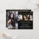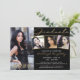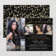 Convite para festas de formatura preto, dourado e branco moderno com 4 fotos e elegante tipografia de guiões de ouro manuscrito em champanhe. ASSISTÊNCIA: Para obter ajuda com a modificação ou personalização do design, transferindo o design para outro produto ou, se você quiser coordenar itens, entre em contato com o designer ANTES DE PEDIR por meio do Zazzle Chat ou makeitaboutyoustore@gmail.com.