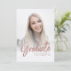 Um cartão com fotos de graduação moderno e moderno para compartilhar a alegria de um segundo grau ou formandos com a família e os amigos. Substitua as fotos na frente, no verso e no texto clicando no botão "Personalizar".