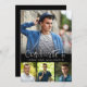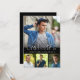 Convite moderno à festa de formatura com uma colagem de fotos de quatro fotos na frente com um falso FORMANDO de título de tipografia de pincel prateado na frente e detalhes do convite de festas na parte traseira. ALTERAÇÕES: Altere a cor preta do fundo e/ou altere o estilo, o tamanho, a cor ou o posicionamento da fonte de texto no EDIT. ASSISTÊNCIA: para obter ajuda com a modificação ou personalização do design, a alteração de cor ou a transferência do design para outro produto, entre em contato com o designer ANTES DE ENCOMENDAR através da guia MENSAGEM de Bate-papo Zazzle ou envie um email para makeitaboutyoustore@gmail.com.