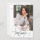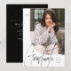 Comemore seu formando com este anúncio e convite modernos de graduação de fotos em um esquema de cores preto e branco. Apresentando uma forma de foto única com uma borda curva na frente, este anúncio de graduação também tem um ousado script moderno "formando" e texto personalizável para nome e ano. A parte de trás preta apresenta o texto do convite juntamente com um script correspondente "Junte-se a nós para celebrar o formando!" Este anúncio e convite originais do formando de Lea Delaveris Design faz parte de uma coleção de anúncios de graduação, suprimentos partidários, decoração, presentes e muito mais. Encontre mais estilos e cores na coleção. Também disponível como download de anúncio de graduação digital!