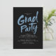Convite para Graduação de design de script de pincel moderno em preto e azul, com foto no verso, simples e única. Personalize-o com suas próprias fotos e informações de formando.