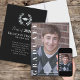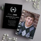 Este design apresenta um anúncio de formando preto e branco, com um simples modelo elegante, excelente para segundos graus ou mais velho universitários, uma tipografia minimalista da classe das tendências, classe de 2023 2024 2025, fotografia de mais velho, um convite para festa de formando mínimo, um louro clássico, louros de graduação mortartáculo chapéu boné, com tipografia clássica de escrita de caligrafia